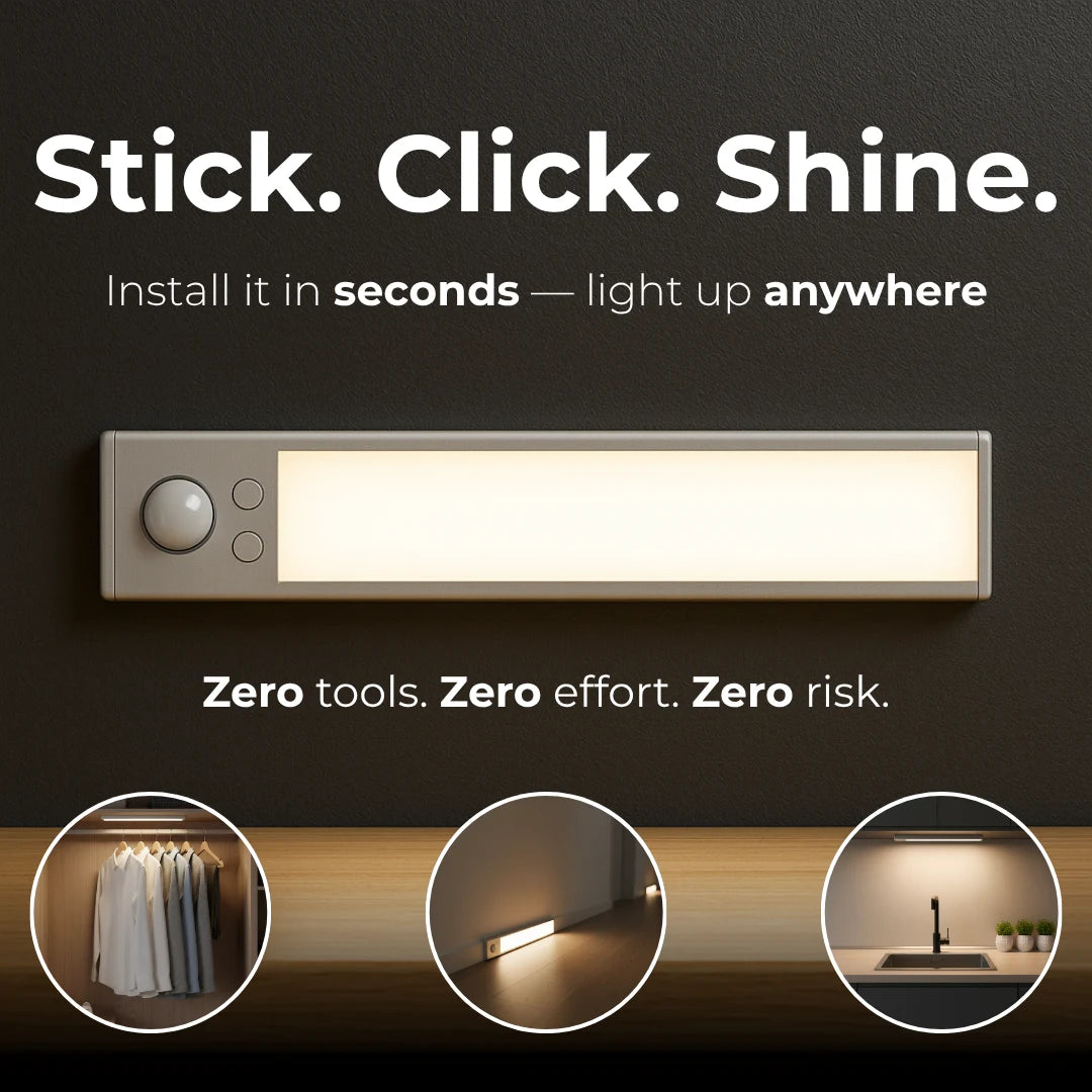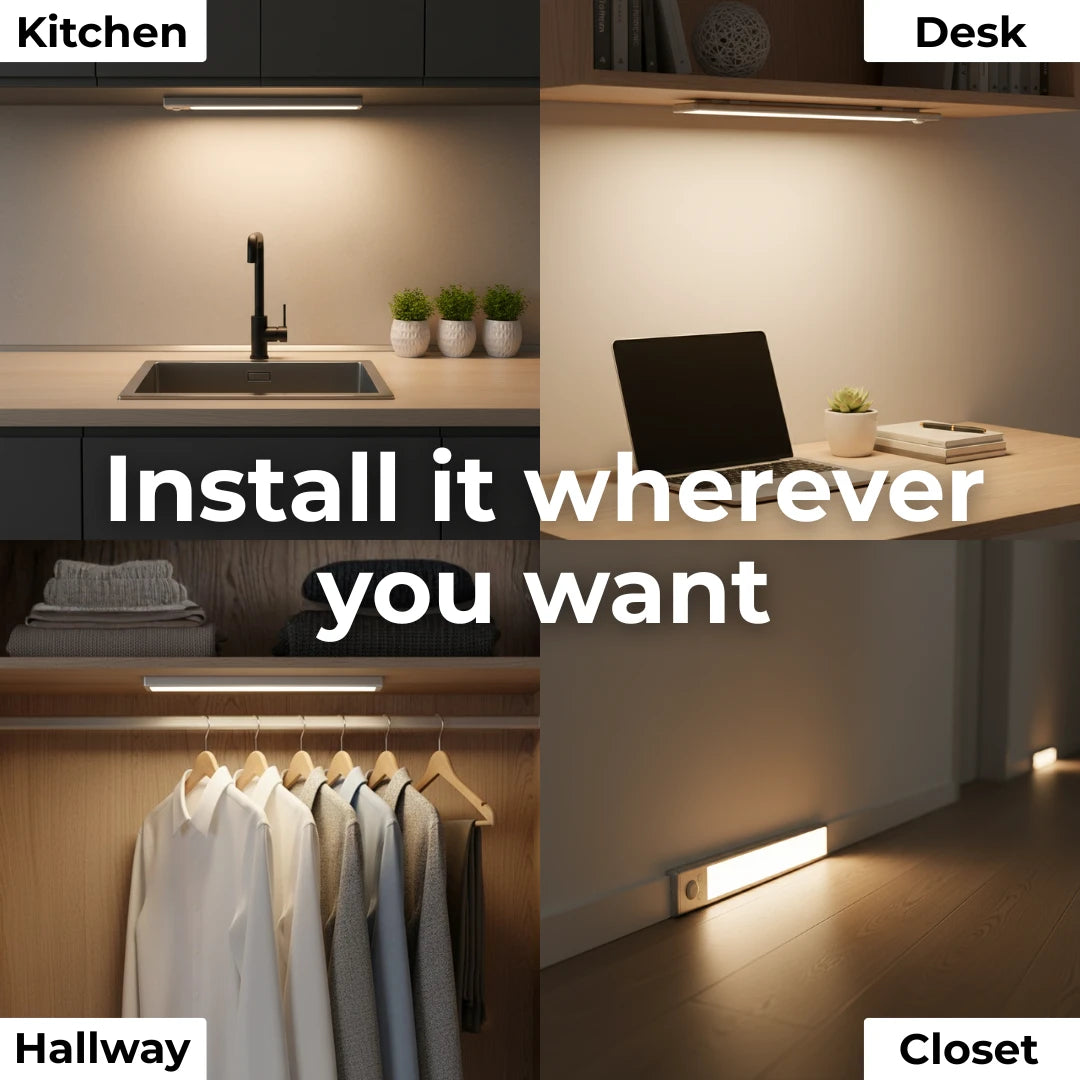 I put these under my cabinets and inside my closet — the difference is huge. They turn on exactly when I need them and make the space look so warm. Love how simple they are to set up.